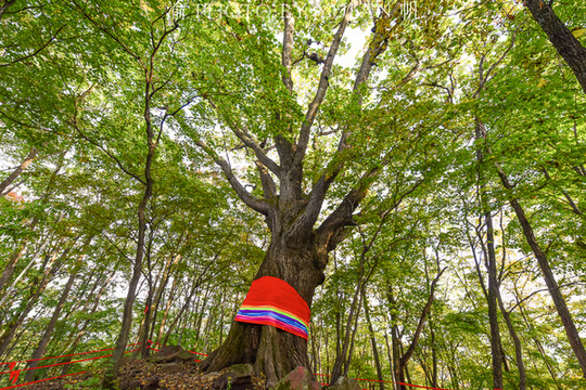 吉林是人们公认的萨满文化的重要发源地之一,是萨满文化遗存保留最完整、内容最丰富的地区之一,至今仍保留着较完整的萨满器物、神谕、活态萨满祭祀仪式等,这既是吉林省宝贵的文化遗产,也是世界非物质文化遗产的精华。而这里的人们对于这棵古橡树的祭拜,其实也算是萨满文化的传承,如今即便不是正式的祭祀活动,只要山里的村民在进山采摘野菜野果或者放牧路过神树附近之时,仍然会到树下磕了头再走。有些人也会不辞劳苦从远处赶来,在树下焚香烧纸,为亲人求福消灾。现在也可以看到,古树的身上挂满了多年来前来祈福的人们留下的各色彩绸和许愿物品。