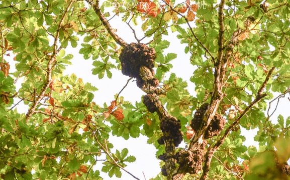 后来人们发现,每次祈求灵验,部落减少了大的灾难,老橡树都会在树枝上长出一颗树瘤。大萨满告诉大家,那是因为老橡树替人顶了灾难,但是它自己是可要受罪的。2000年过去了,老橡树上长出了很多树瘤,这正是老橡树为人们顶罪消灾而留下的印记!因此,当地人一直以来对老橡树都充满了深深的感激之情。