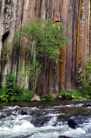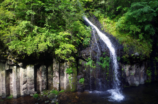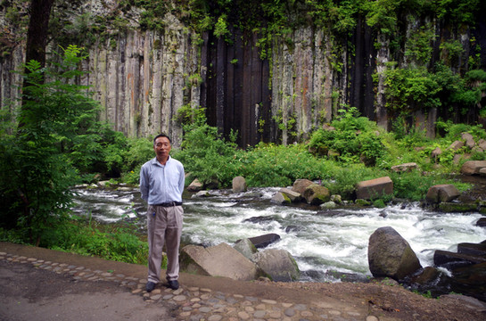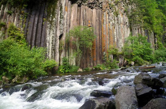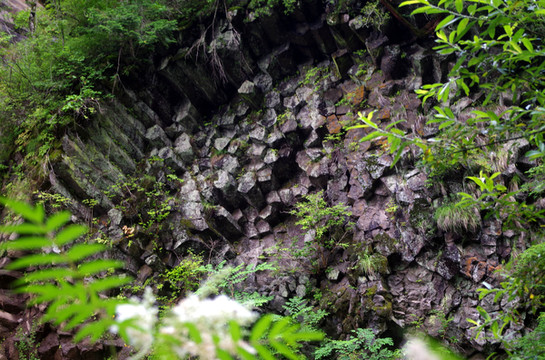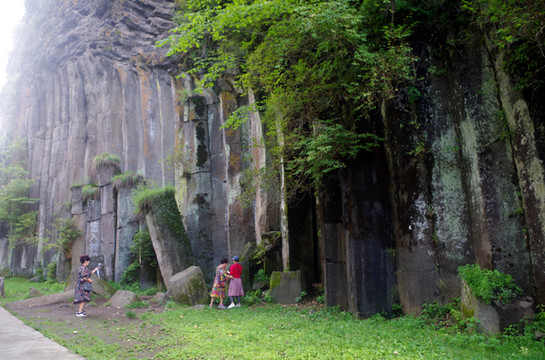 据说是火山喷发时,石头在水火的崩塌下,形成了一条一条的柱状。
