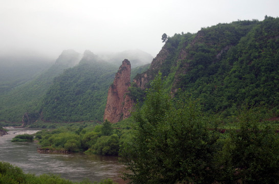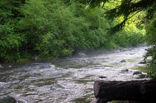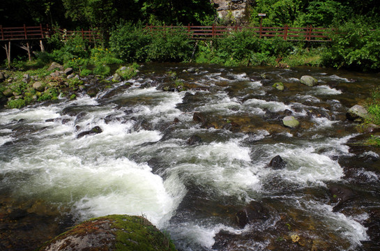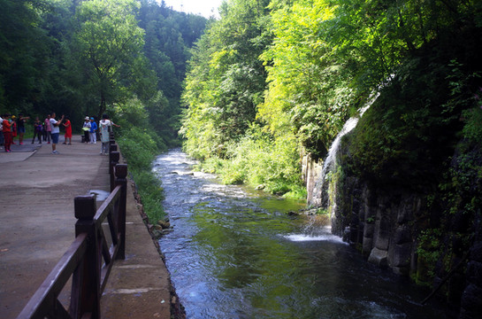 里面的景色,以两面的山石树木和沟里的流水为主。空气相当清新。