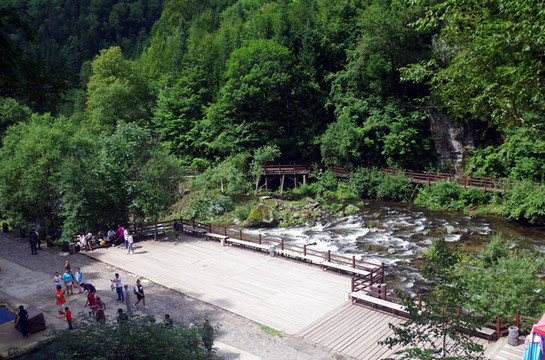 我们要游览的,就是十五道沟。据说,它有四川九寨沟的神韵。当我游完之后才知道言过其实了。它和九寨沟无法相比,但在东北,还是一处不错的景观了。