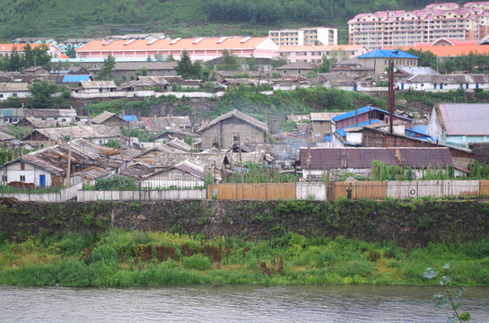 对面红盖的方房子那边就是朝鲜了。