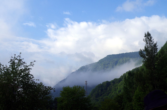 第二天早早起来,四周的山上飘起了雾。看着让人神往。