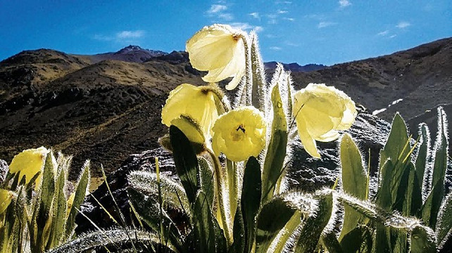 绿绒蒿,身披长长的绒毛,这件“多功能防护外套”能够保护它免受严寒侵袭,而它硕大又招摇的花朵成功吸引昆虫帮忙传粉。当然,即使没有昆虫光顾,它还能依靠自花授粉继续繁衍,这种繁衍策略充分展现了生命面对不确定环境时的机智与灵活。