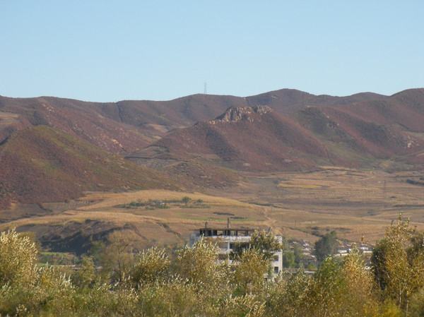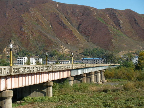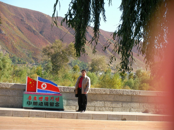 到口岸就到大桥参观,照了几张相,还花2元望远镜看看朝鲜人民干活的情景,有农民在干活。