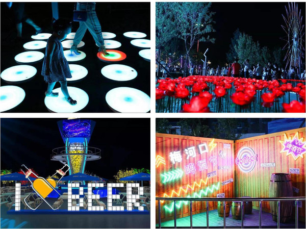 清 爽的晚风撩拨心弦,漂亮的巴西、菲律宾女团热情性感, 知名 DJ 酷玩音浪,热度驻场歌手惊艳亮相,精彩表演燃爆全场!第二届啤酒节更是让人大饱眼福,舞台之上维密大秀热辣上演,刺激的铁笼飞车炫酷与刺激并存,互动游戏嗨翻全场。舞台之下,荧光花海,网红打卡区迎来众多游客的追捧。不远处的喷泉吸引了大批可爱的孩子,可爱的嬉闹声、美妙的音乐声、清脆的碰杯声交织在一起,勾勒出了最美的梅城之夜。