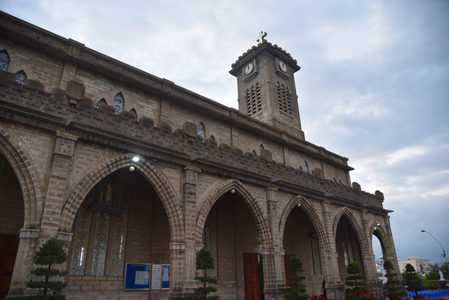 芽庄教堂是用石头修砌而成,又称石头大教堂。由于到芽庄的中国旅游团很多,而教堂内外的广场都不宽敞,难以容纳众多的国内游客,在入口处有一个显眼的告示牌,上面写着“中国团体游客不得入内”,但这绝不是歧视中国人。