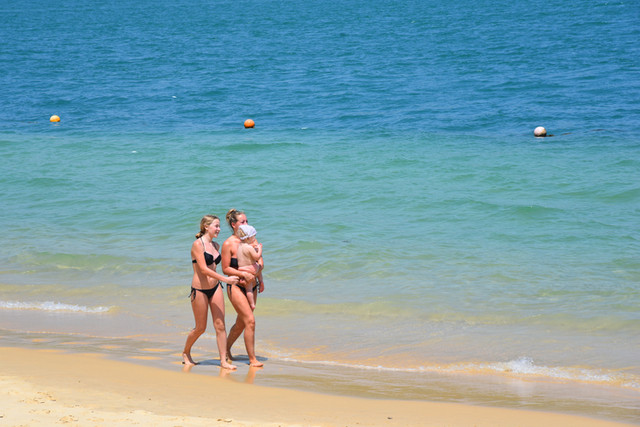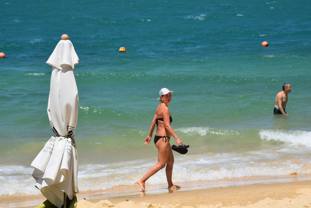 那还等什么,换上你的泳装,迈步来到海边,当一次弄潮儿去赶海,舒舒展展地融入大海之中,让海水洗尽纷扰的凡尘,让海浪冲掉世俗的杂念。左边这片海滩多为外国人,是岛上住宿的游客专属区域,一日游的游客不能前往。