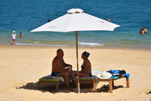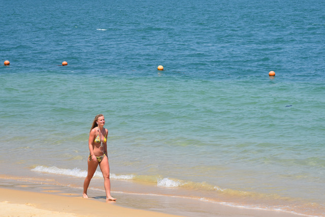 西方人喜欢在海边晒太阳是一种潮流,女士们更是身穿比基尼,或在海水里,或在沙滩上,充分地享受这里的日光浴。他们也不忌讳有人给她拍照,不像有些国人发现你举起相机时,急忙躲避你的镜头,甚至于要求你删除照片。