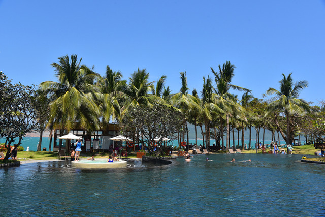 有道是:椰树参天遮阴蔽日;草坪铺地养眼沁肺。大自然把温煦的阳光、清新的空气、湛蓝的海水、柔和的沙滩都赐予了这座小岛。我们不远万里来到这里,忘却城市的喧嚣,忘却生活的烦恼,以一种悠然自得的心态尽情游玩。