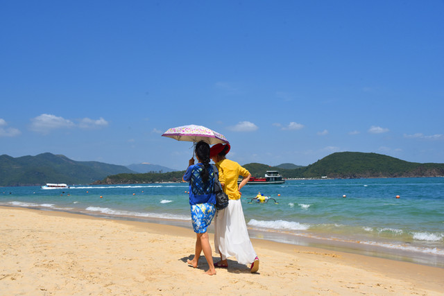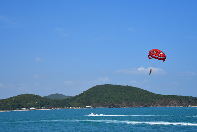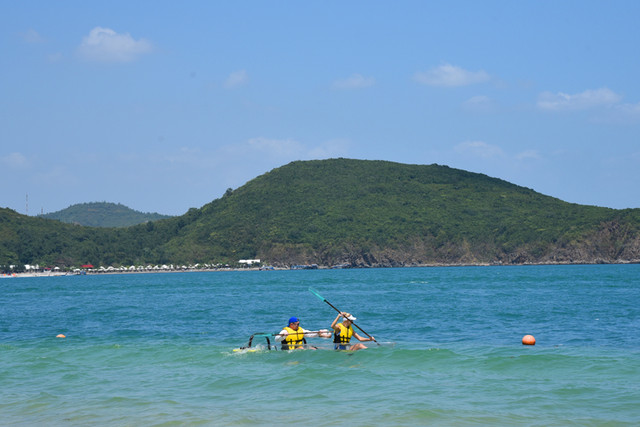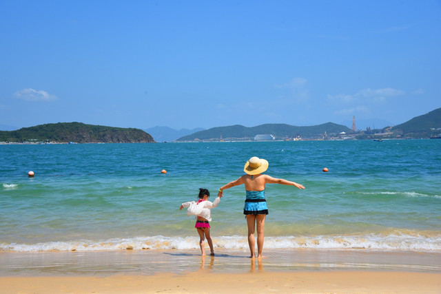 龙门阵又扯远,还是书归正传。家人们在浅海里随波逐浪,在沙滩上欢呼雀跃,玩得十分尽兴,令人流连忘返。放眼望去,摩托艇乘风破浪,滑翔伞空中飘移,弄潮儿追逐嬉戏,情侣们如胶似漆,这里的一切都充满着诗情画意。