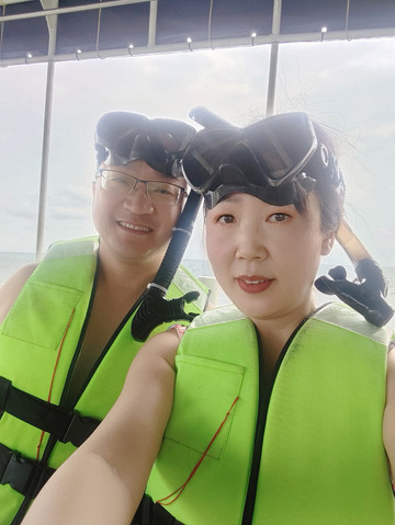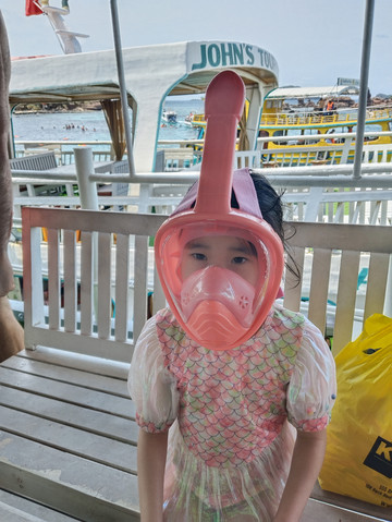 浮潜都是成人浮潜用具,我们是给女儿自己买的浮潜面罩,挺好用的,因为孩子不会咬管子,还是用面罩更好。