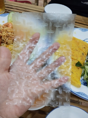 还吃了一种自己卷的饼,卷的皮以为是塑料,结果是可以吃的糯米做的。