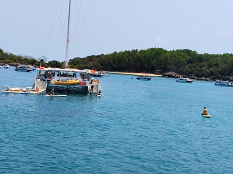 跳岛游是整个行程中最有趣的,毕竟自己去不可能出海,我们选了跳3岛,第一个岛浮潜珊瑚比较远,第二个岛浮潜珊瑚很低,要注意不要被珊瑚割伤,第三个岛是海滩,可以游泳或者参加海上运动,也可以冲澡,2万一个人。