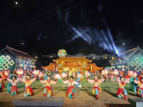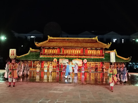 越南精华表演晚上8点半开始,在竹楼旁边,像一个文俗村,下午开始里面有很多演出,都是免费的,晚上开始就不能进了,特别推荐,场景宏大,还有很多高科技,可以了解越南文化和越南古代的文化。