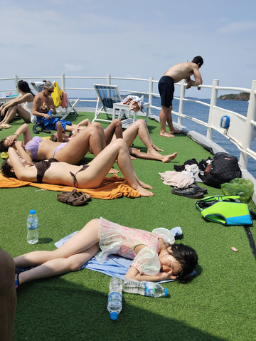 浮潜完好多人直接躺甲板上享受日光浴。
