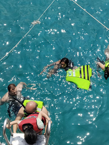 中午包午餐,但是很简单的午餐,一定要带上防晒霜,因为非常晒,浮潜的时候太阳直晒,上船就要涂防晒霜。