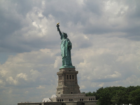 自由女神像称不上历史古迹,仅是一件人工塑造的艺术品,现在已经被列为世界遗产。它是法国在1876年赠送给美国的独立100周年礼物。美国的自由女神像位于美国纽约州纽约市哈德逊河口附近,雕像安放在美国自由岛上,法国著名雕塑家巴托尔迪历时10年艰辛完成了雕像的雕塑工作,自由女神穿着古希腊风格的服装,所戴头冠有象征世界七大洲及五大洋的七道尖芒。19世纪末,洲际旅行尚无空中航线,越过大洋的运输工具只有轮船,而纽约港是美国沿海最大的港口。