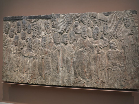 坐在壁画前许久,这幅巨型壁画切割复原的痕迹还是可以看出来的,虽然这里的保护是世界一流,这里对艺术的尊重也是值得赞叹,但毕竟切割运输还是对原作有破坏。当然国内的残余部分损毁更加的严重。壁画对面就是龙门石窟的帝后礼佛图,应该是极品的石刻,但复原拼接痕迹依旧明显,算是一点遗憾吧!这些极致艺术不管是被盗也好,被卖也好,历史已经不能重来,现在可以让我们欣赏才是他的价值所在。房间周围响堂山,云岗等佛像时刻不少,值得一看。一路看看玉器,青铜器,这里的成列以艺术性为主,不是为了述说历史的渊源,苏州的园林,中国的陶瓷都在这里有一席之地。
