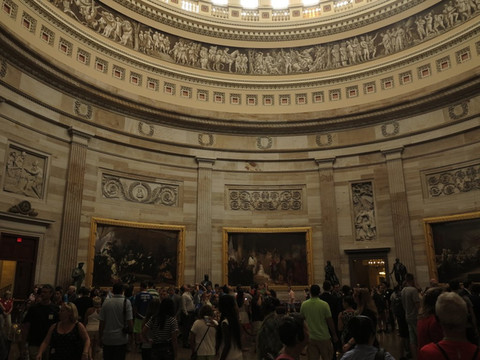 国会大厦对面就是最高法院,随意看看,走过广场进入国会大厦,热情的工作人员主动介绍,得知没有预约也可以上穹顶看国会大厦的精华,很开心。排队10来分钟,先看了介绍美国建国历史的电影短片,好莱坞大片的风格,制作一流,感觉没有太多的个人崇拜,更多的是融合,这个移民国家是如何让各种人在一起融合,保障大家的各自利益,当然是主旋律。