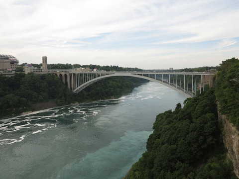 游览瀑布最好的项目是坐雾中少女号游船,零距离接触大瀑布。17美元的船票,等船的时候会发雨衣,右边就是虹桥,连接美国和加拿大,尼亚加拉河就在桥下通过,如果签证没问题,就可以开车过去,据说美国这里不会阻止你过桥,但加拿大这边会因为你没有签证让你原路返回。