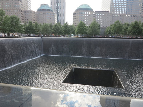 美元的诞生地啊!告别美联储,不远就是911遗址,这里在原来的地基上挖了两个无比巨大的蓄水池,池边刻着所有遇难者的名字,来这里就是为了缅怀一下,这里气氛还是比较凝重的,两个蓄水池透着一股压抑。
