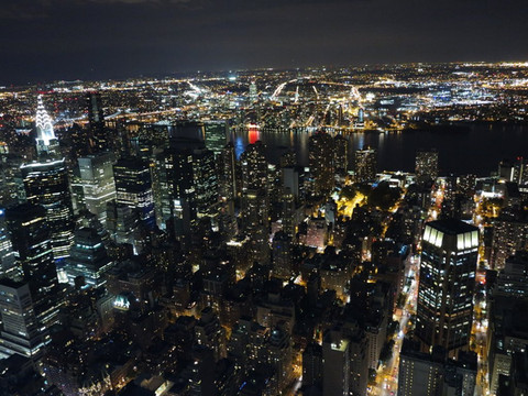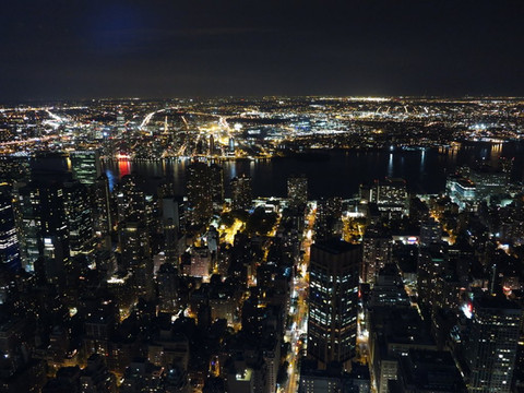 天色渐暗,今天最后一站留给了帝国大厦,纽约的第一高楼,86层的观光需要购票,29美元不便宜,但这里有太多电影场景,也是纽约最好的观景平台,这里居然上楼要排队2个多小时。门口不少黑人黄牛在买门票,虽说不假,但他们会加几元钱,估计赚点差价,但毕竟不是官方认可的,我们生怕有问题老实排队进场买票。如果想快速上楼,可以买50元的VIP票,略有小贵啊!顶着黑夜到了86层平台,纽约的夜景还是很震撼的。要说上海陆家嘴确实不错,但真和这里比较起来差距还是不小的。