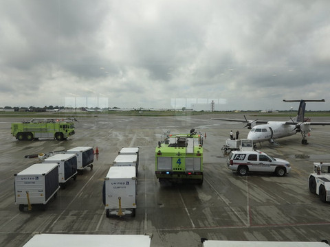 第二天睡到自然醒,休闲的逛了周围的TARGET超市,小镇人少而舒服,超市购物也算是意外的收获,好吃的美国樱桃,再回到尼亚加拉河边坐坐看看,顺利的开车回到机场,我们要飞去华盛顿。正好是世界杯的决赛日,我们等待着飞机,短信说要晚点一个多小时,好吧!我们习惯了。慢慢等待中飞机来了,螺旋桨飞机,看着不错,开始登机了,刚踏上飞机的楼梯,美国的地勤人员叫我们BACK,心里又一次发紧,啥情况?回到候机楼,透过玻璃看到飞机的螺旋桨发动机开始在冒烟,消防车,警车来了一堆,工作人员都在拍照,看来有意外啊!