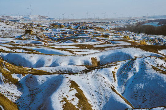 为了吃草在雪坡上刨出一个个带圆形纹路的洞