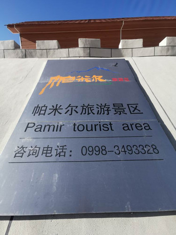 塔合曼乡湿地观景台靠近公路的一侧,有帕米尔旅游景区的金属标志牌。