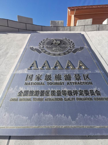 塔合曼乡湿地观景台靠近公路的一侧,有国家五A景区的金属标志牌。