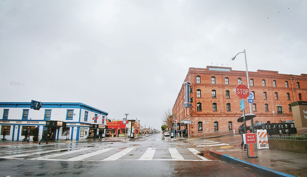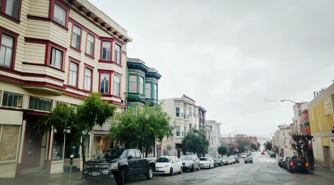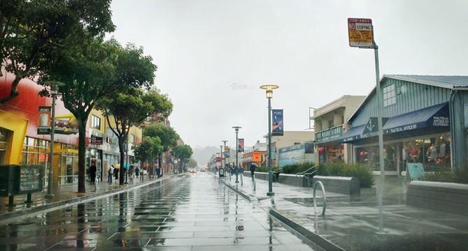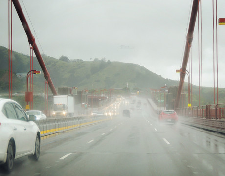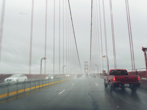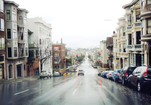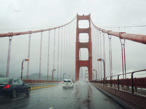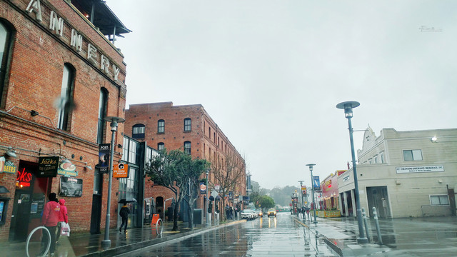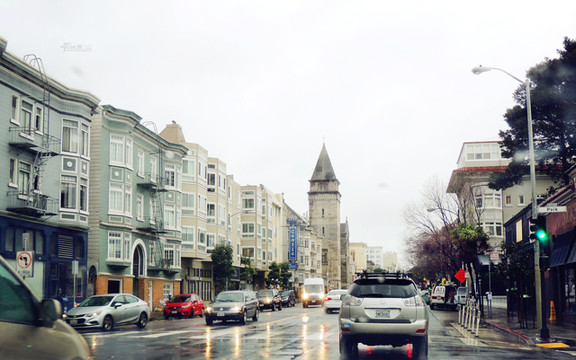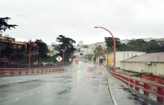 经过加州1号公路两日雨中艰难前行,终于驶进旧金山繁华的市区