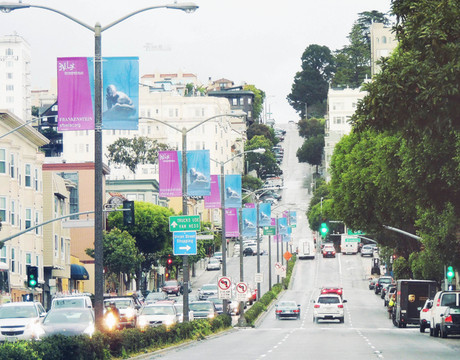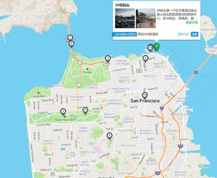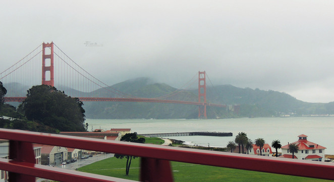 沿着商业街向西远处就是旧金山著名的必看地标——金门大桥(Golden Gate Bridge)