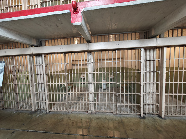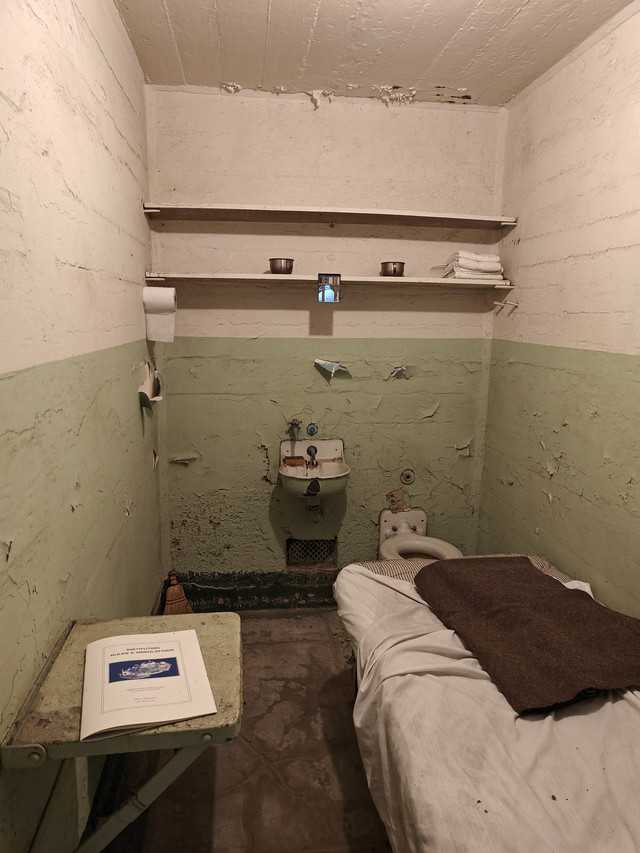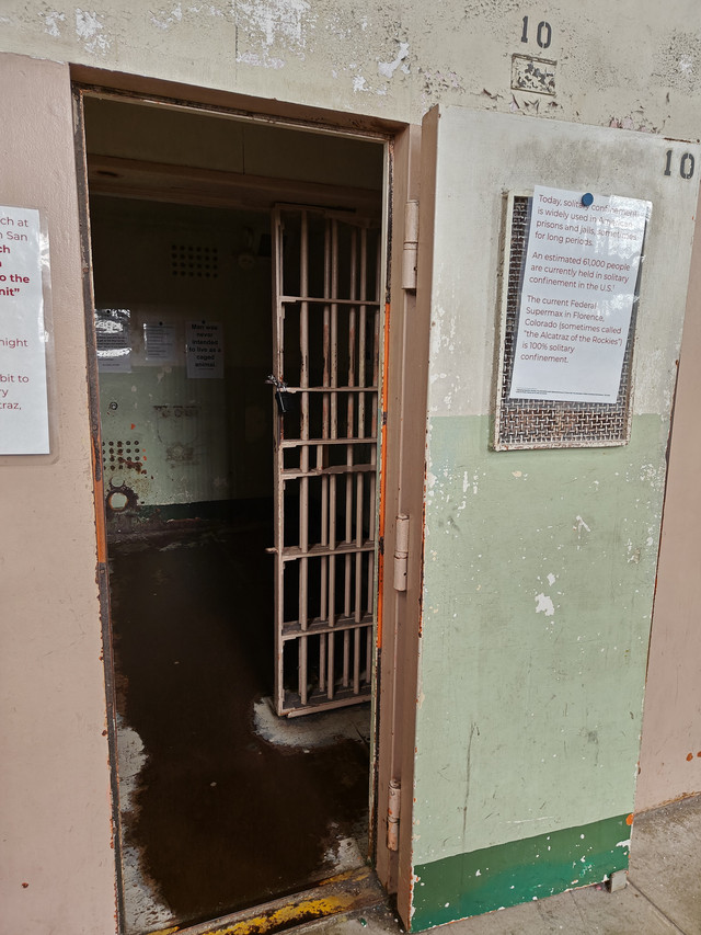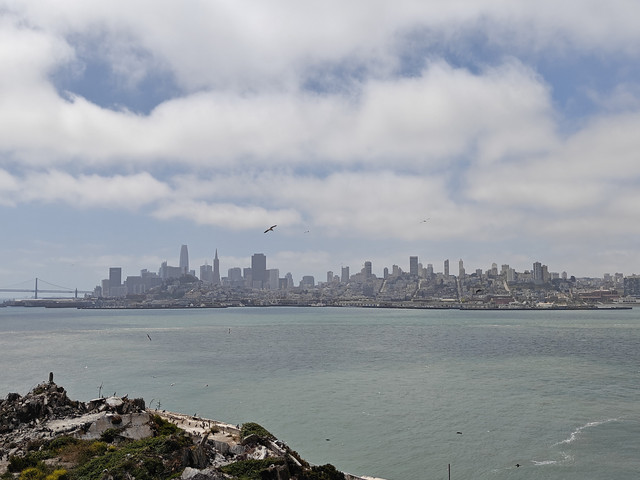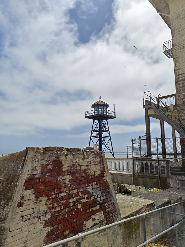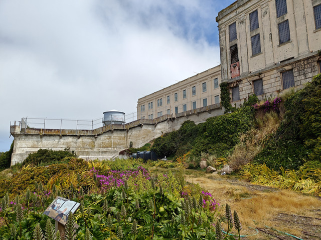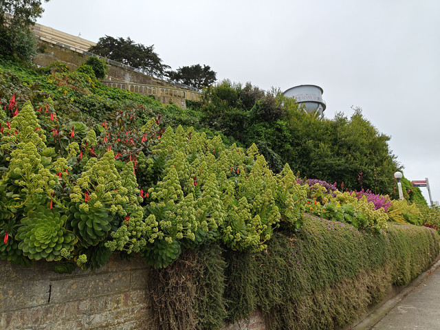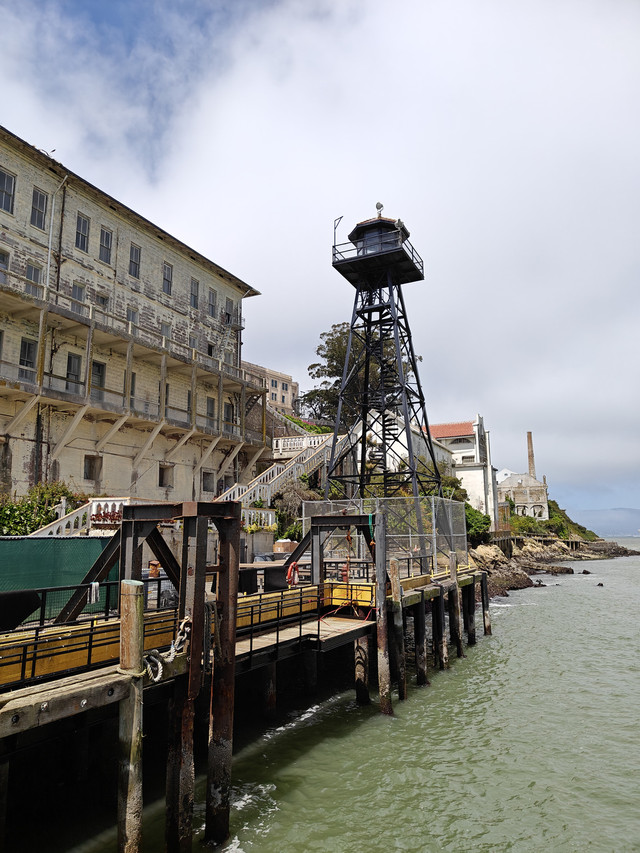 走进ALCATRAZ ISLAND(恶魔岛)。从33号码头坐船十五分钟即可上岛,每天很多班,八点四十五开始,每隔半个小时到一个小时一班。不过最好提前几天预定,我昨天中午去就没买到当天的船票,最早买到了今天九点二十的。票价$45。回程有船就可以上。外面可以自由参观,进去主要的cellhouse有电子讲解机,工作人员会介绍如何使用,并调整到你需要的语言。很多电影里有这个岛上监狱的场景,以为是阴森可怕。实际看过得还是满人道的,没看到国民党和日本人监狱里的审讯室。据介绍犯人和工作人员同等伙食,而且品种丰富。监舍条件除了 号称黑洞的禁闭室里啥也没有(包括灯光 )外,其他的都是单间,有单独的洗漱方便的地方,甚至后来还有收听广播的插孔。图13是曾经成功越狱的房间。现在岛上的生物显得特别旺盛(包括海鸟和多肉等植物)。
