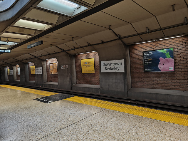 轮渡码头坐船到Oakland,然后坐公交或者打Uber到Berkeley参观世界著名大学加州大学系的University of California,Berkeley。进出口很多无人过问,塔楼四点关,我们正好四点到,可惜了。本校学生免费,外人收费是$5,有电梯可以直达楼顶,俯瞰校园全景及湾区。校园的建筑风格基本是一致的白色建筑。Berkeley小城不大,有公交和地铁到旧金山市内。我们坐地铁红线到powell st,这趟车可以直达机场。