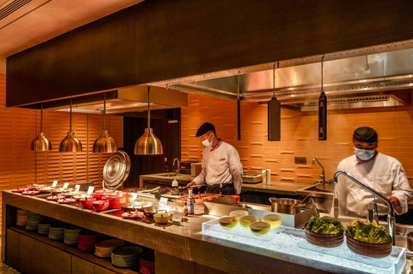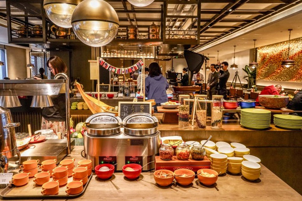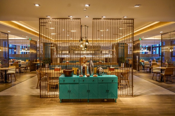 位于酒店一层的“游·藏”邻里全日自助餐厅,在装饰上以金黄的“丰收”色彩为基调,巧妙结合了藏族的贵族仪式与 英国 庄园文化。