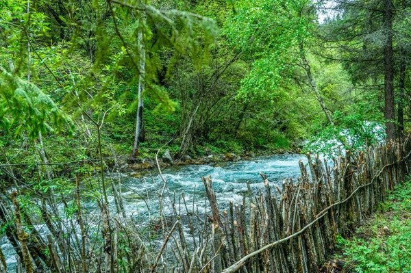 中查沟常年有雪峰、森林、溪流。这里的房屋有 川北 民居的风格,还有古老纯朴的藏族村寨。