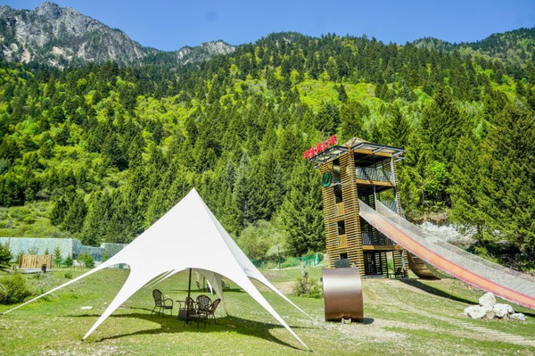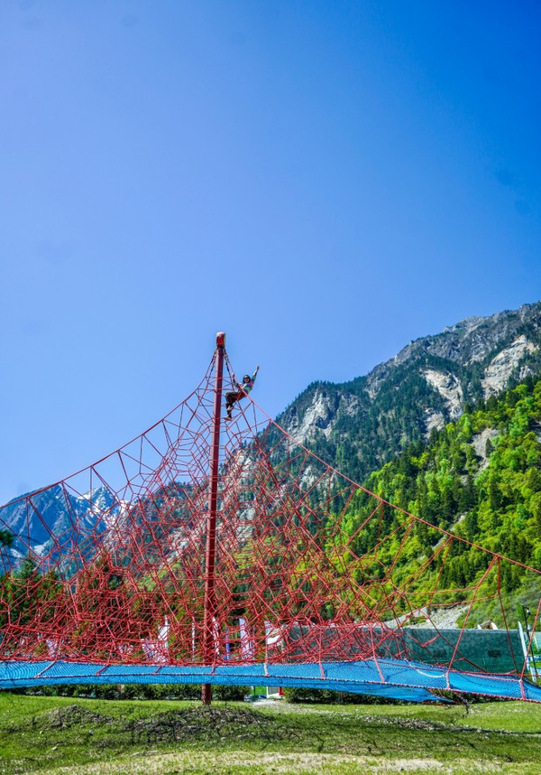 格林7号乐园,位于希尔顿酒店后面山上,中查村一号平台,雪山下的户外探险乐园,大人小孩都可以玩。