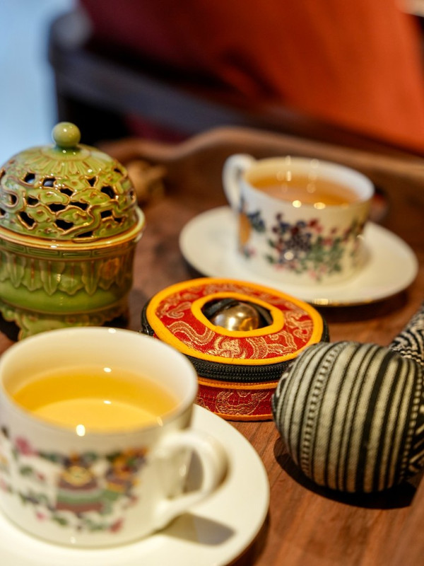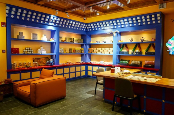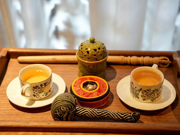 书阁以传统唐卡浓郁的色彩为基调,装饰沿袭了“德勒府邸”的精细花纹,色彩艳丽,将昔日府邸的生活艺术传承重现,在这里喝一杯有着藏式风情的下午茶,然后在书海中寻觅“一花一世界、一叶一菩提”的心灵净土。