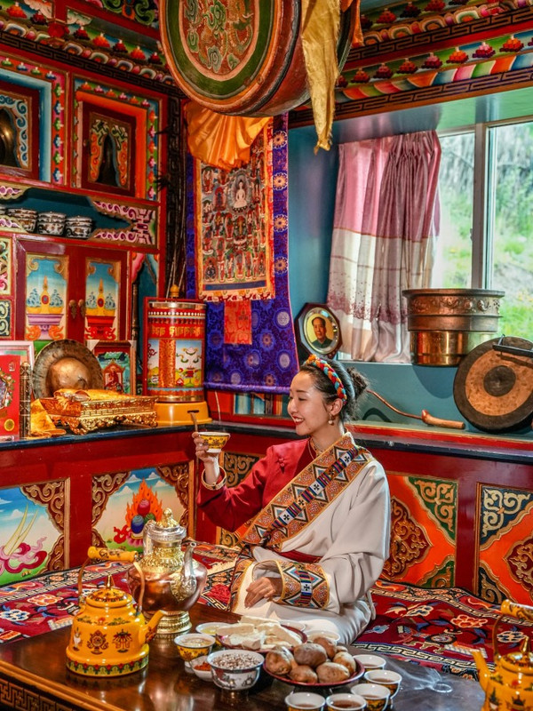 如果时间允许,可以去中查沟当地藏民家喝一次正宗的酥油茶,以及吃高山土豆,真的超级好吃。