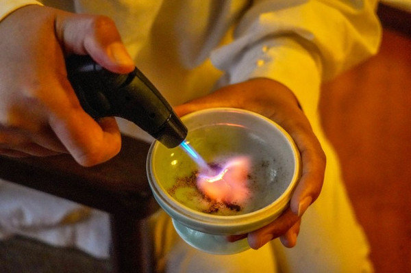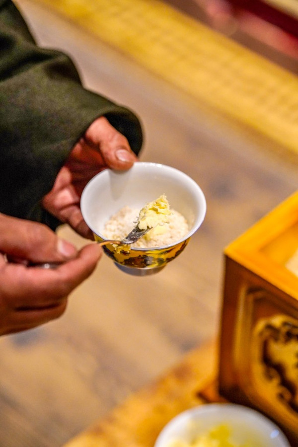 酥油茶一开始是茶奶酪、酥油、糖分开装在茶杯里的。