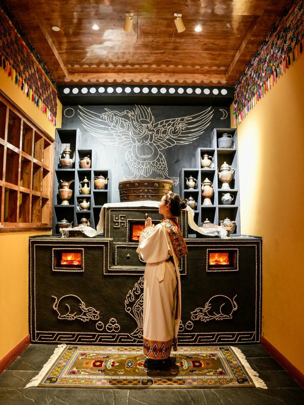 大堂正中立有一座火塘,凸显了浓郁的藏式民居特色,更植入藏式日常生活文化。