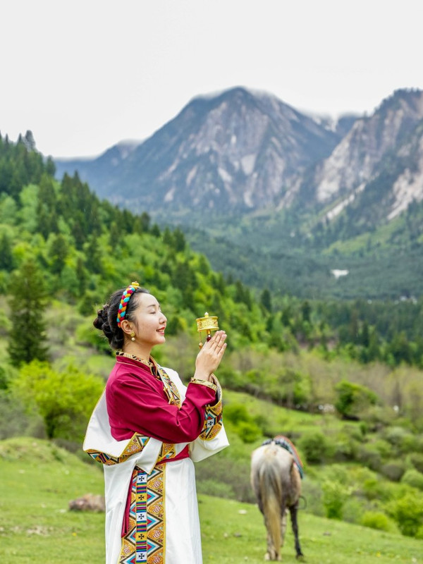 中查沟真的是太美了,不仅云雾缭绕、青山环抱、草甸铺展、村寨相连、牛羊成群,渐染森林……还有古老的藏族村寨,其神秘的藏族民俗风情和人文资源别具特色。