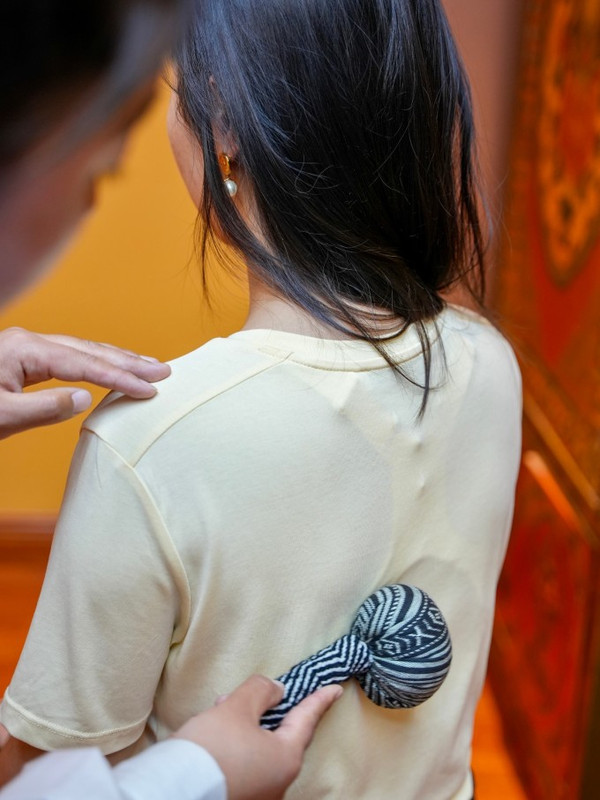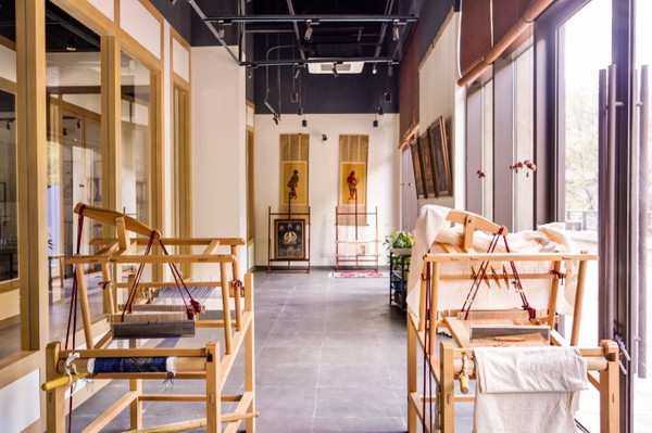 药浴和推拿服务的弟弟妹妹们都是学了七八年的藏医师,在健阳乐住校长创建的壤 巴拉 非遗传习所学习,都是20出头的年轻弟弟妹妹,一共有20几个专业理疗师,还去过 上海 学习中医,崂山学习道医。都需要通过藏医大师的考试,药学、推拿、拔罐、针灸都是必修课。二楼的挂画是织中之圣——缂丝。
