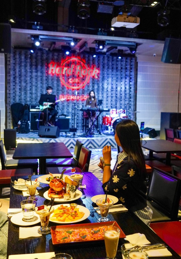 同时也能满足吃喝玩乐,看电影的娱乐休闲需求。我们基本上午餐、晚餐包括下午喝咖啡,都是在这里解决,汇集了世界各地的美食也不夸张。