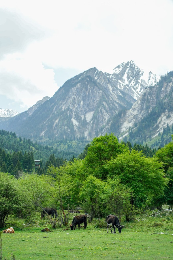 这里也被称为“小 瑞士 ”,山顶常年积雪,郁郁葱葱,牛羊成群,生态非常完善。