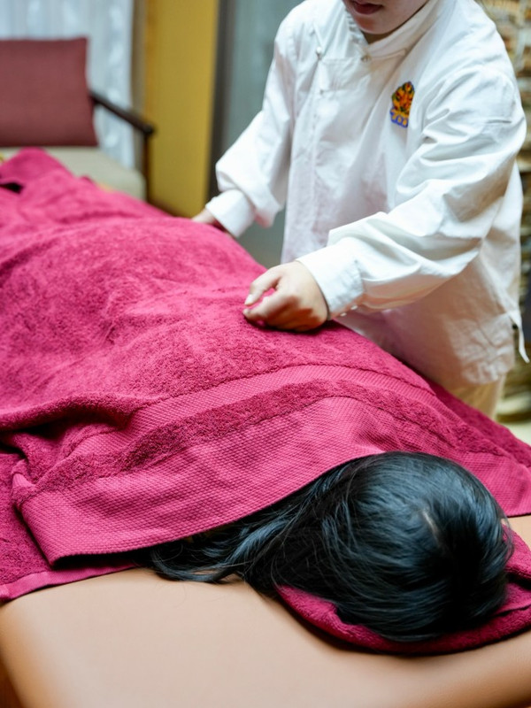 推拿手法结合藏医、中医、道医的不同手法和仪轨(包含福慧铃、金刚拳开穴、四轮音思、智慧金刚按摩、金刚棒闭穴)