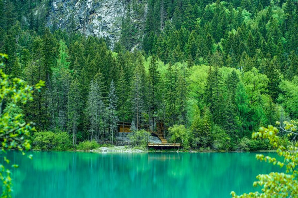 直接透过玻璃窗看风景,就像在看美丽的山水画一样。早晨起来云山雾绕,隐隐约看到对面山顶的雪山,以山林为景,以云雾为屏,睡在海拔两千五百多米的森林之中。