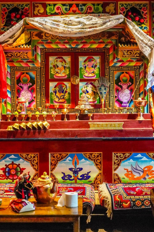 一共两层楼,处处细节体现品质。有脱俗的绘画,堆绣等艺术品,手工制作,精致精美的藏式装潢。