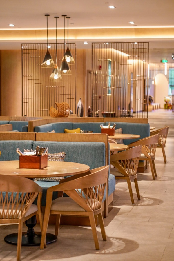 位于酒店一层的全日餐厅 -- 花荟味的设计概念意向源于 九寨沟 内的五花海景点,在五彩斑斓的仙境中品享浪漫时光。